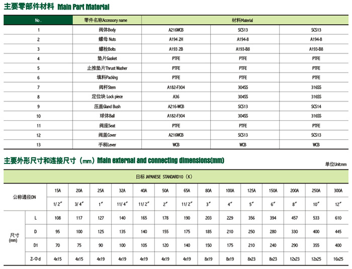 日標不銹鋼球閥結構圖及參數表